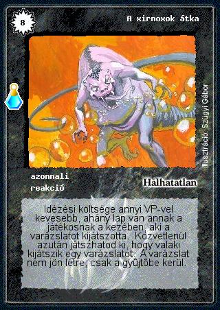 (AK87) Minden lap alap idézési költsége a bal felső sarokba írt szám, vagyis A xirnoxok átkánál nyolc. Ez független attól, hogy mennyiért játszom ki. Amennyiért kijátszom, azt nevezzük módosított idézési költségnek, és ezt kell figyelembe venni pl. a Manacsapdánál, A hatalom torzulásánál, A hatalom szavánál és a hasonló lapoknál.