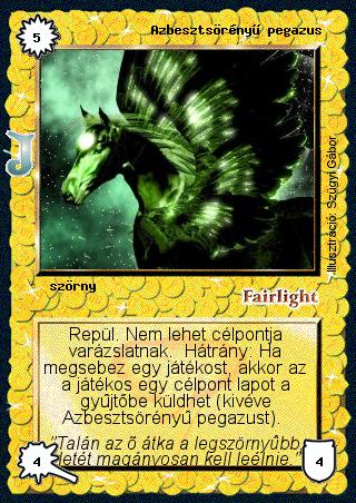 Szöveg: Repül. Nem lehet célpontja varázslatnak. Hátrány: Ha megsebez egy játékost, akkor az a játékos egy célpont lapot a gyűjtőbe küldhet (kivéve Azbesztsörényű pegazust).