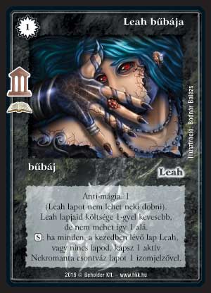 Kiadás: Istenek csarnoka (Zén) Gyakoriság: ritka Lapszín (isten): Leah Típus: bűbáj Altípus: - Szöveg: Anti-mágia: 1 (Leah lapot nem lehet neki dobni). Leah lapjaid költsége 1-gyel kevesebb, de nem mehet így 1 alá. (S): ha minden, a kezedben lévő lap Leah, vagy nincs lapod, kapsz 1 aktív Nekromanta csontváz lapot 1 izomjelzővel. Illusztráció: Bodnár Balázs